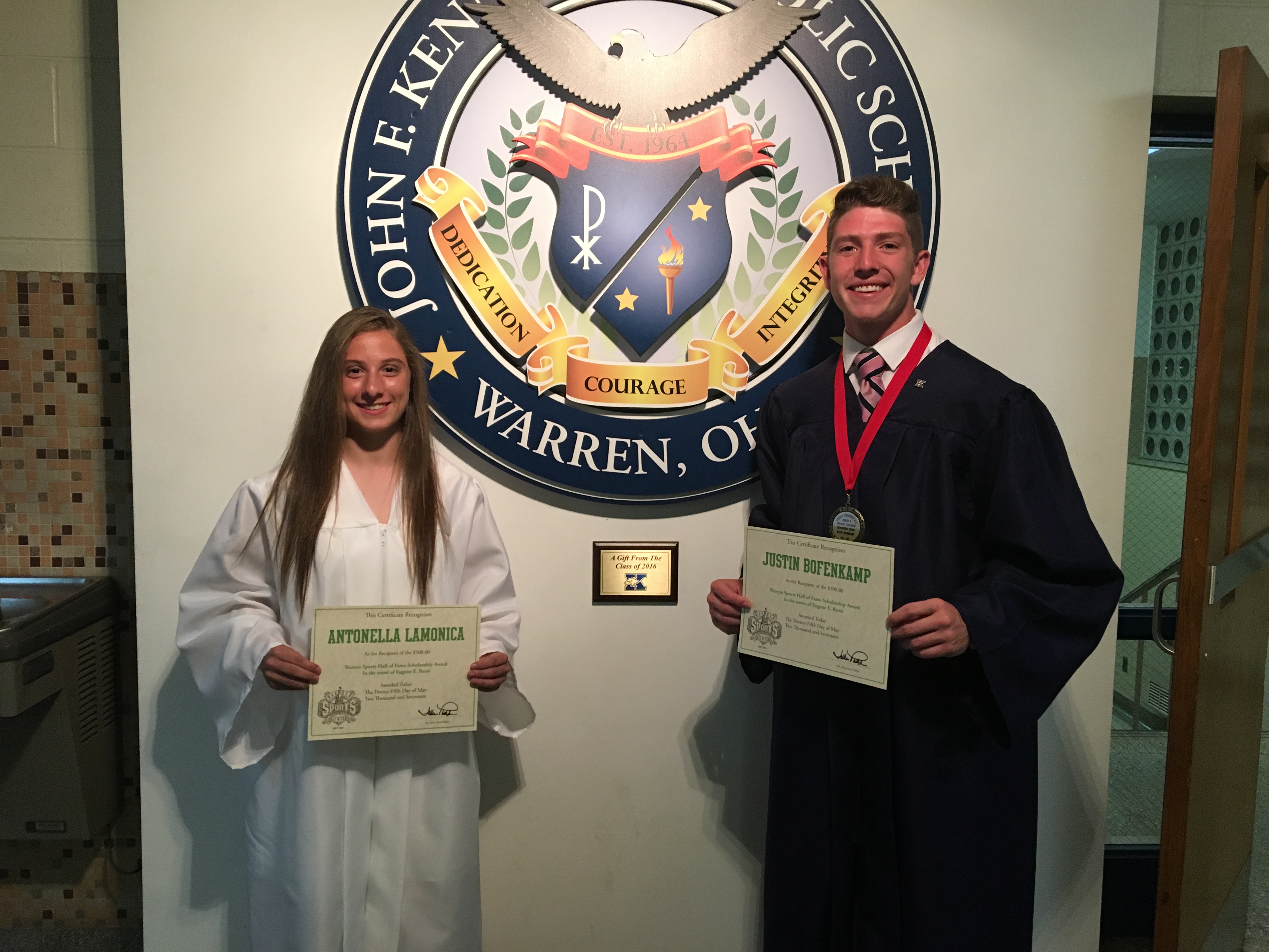 The Warren Sports Hall of Fame, proudly presented Riley Brown and Thaddeus McCollough - Alexander with The Donald Ford Scholarship, both received $500.00 to further their education.