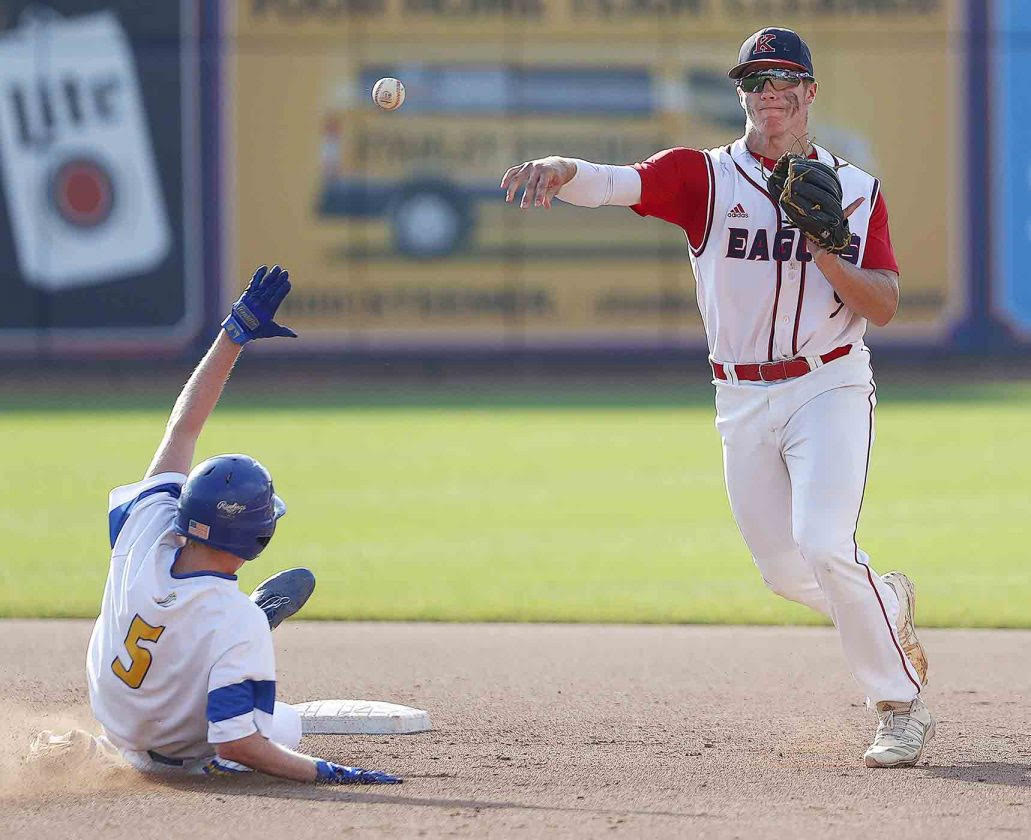WIN: Gavin Shrum (7 strikeouts and 1 walk). LOSS: Collin Overholt (9 strikeouts and 3 walks). TWO OR MORE HITS: K - Gavin Shrum 2, Michael Mauro 2; L - Landon Price 2. TWO OR MORE RBIs: K - Mauro 2.